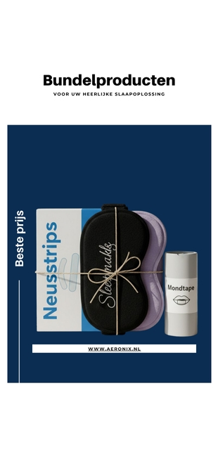 Onze bundels zijn samengesteld uit een combinatie van onze bestverkochte producten, vaak met een thema, zoals een ‘Slaap Comfort Bundel’ met neusstrips en mondtape, of een ‘Reis Essentials Bundel’ met kleinere reisbenodigdheden. De exacte inhoud varieert per bundel en staat duidelijk vermeld op de productpagina.